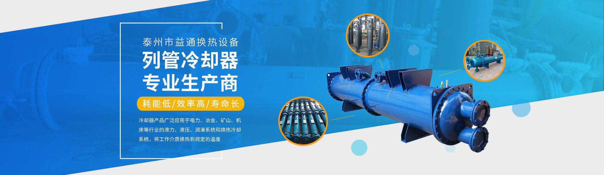 我們公司年來從事:管式冷卻器、板式換熱器、冷卻器組等換熱產品產品,擁有豐富的 行業經驗;公司產品換熱效率高,結構緊湊,輕而堅固、使用壽命長等特點,應用于液 壓設備、電力設備、機床、動力設備、工程機械、空分、石化、制冷空調等領域